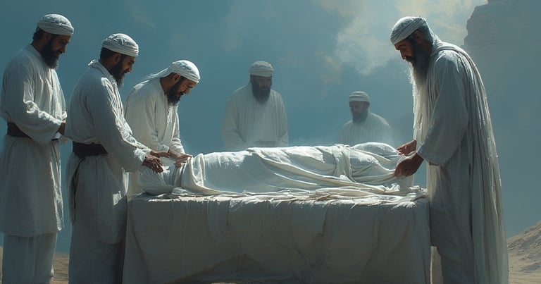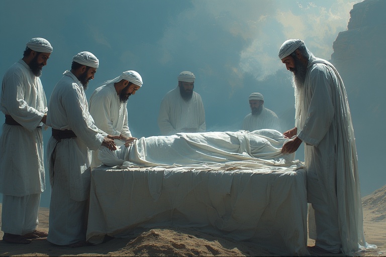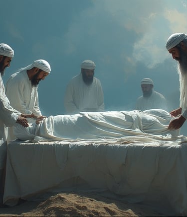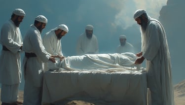 La mise en linceul est le 2e des 4 droits du/de la défunt(e) (janaza) et s’effectue après la toilette rituelle musulmane.