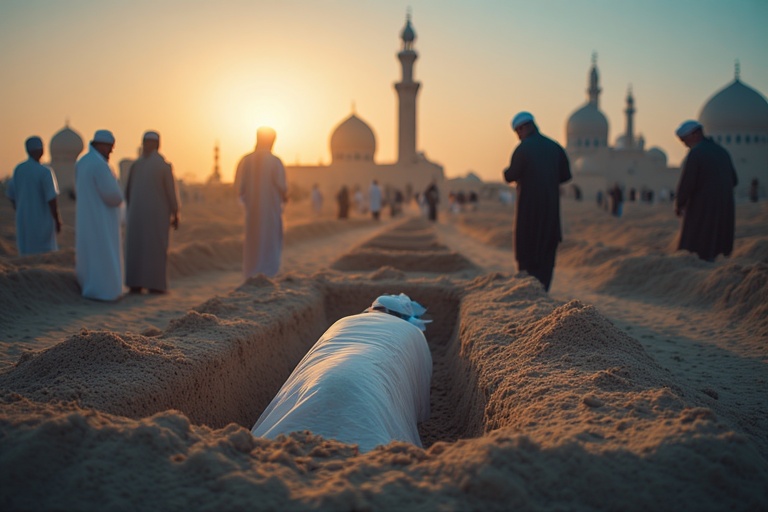 Il est recommandé qu’un grand nombre de personnes de la communauté assiste à l’enterrement (inhumation) et d’invoquer pour la personne une fois la fosse rebouchée.
